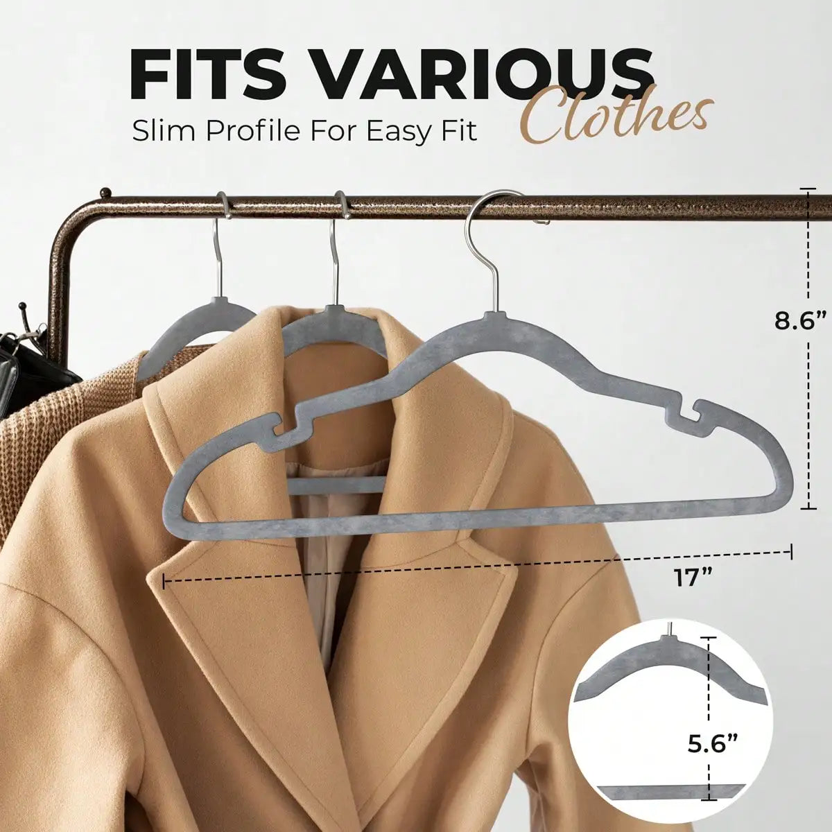 100 Pack Velvet Hanger For Shirt, Pants, Dresses, Skirts, Suits and Jackets. Slim Space Saving Design. - Standard Coat Hanger - Sturdy.