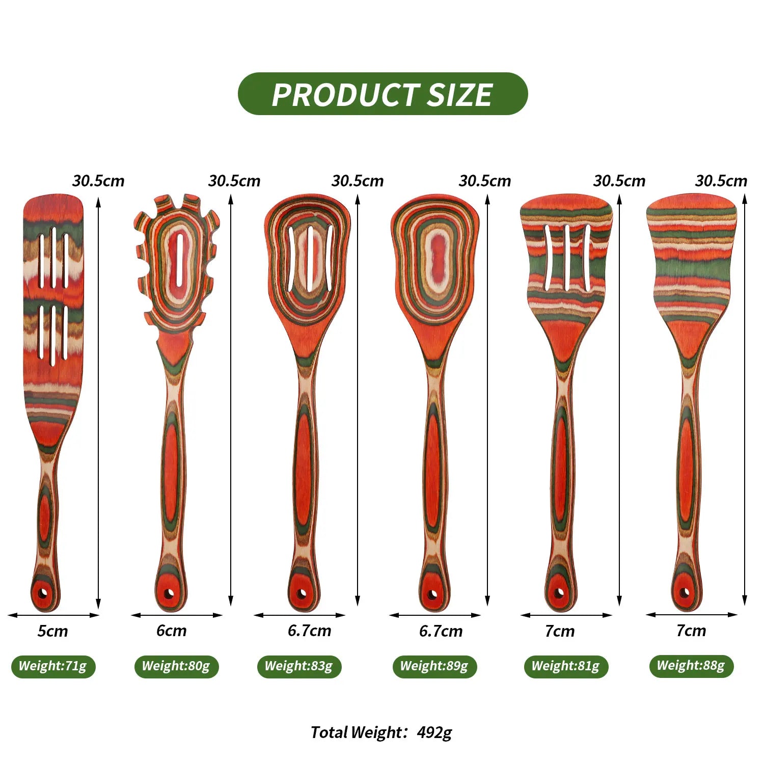 6pcs Kitchen Utensils Set, Pakkawood Spoons for Cooking,Wood Serving Spatula spoon, Salad Tongs(Orange red)
