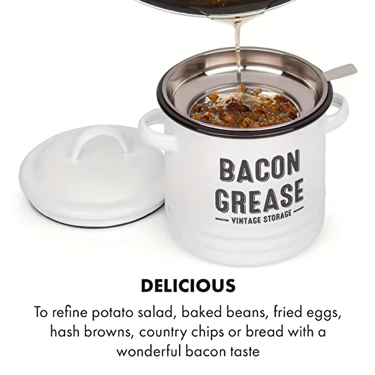 1pc Large Capacity Enamel Oil Pot with Lid - Rust-Resistant Grease Container for Home Kitchen Use Cooking Oil Storage Canister
