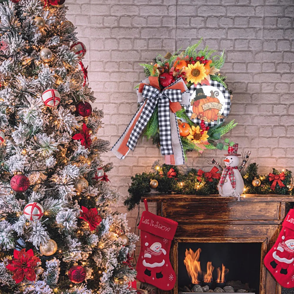 5. Fall Thanksgiving Pumpkin Wreath Buffalo Lattice Pumpkin Sunflower Wreath