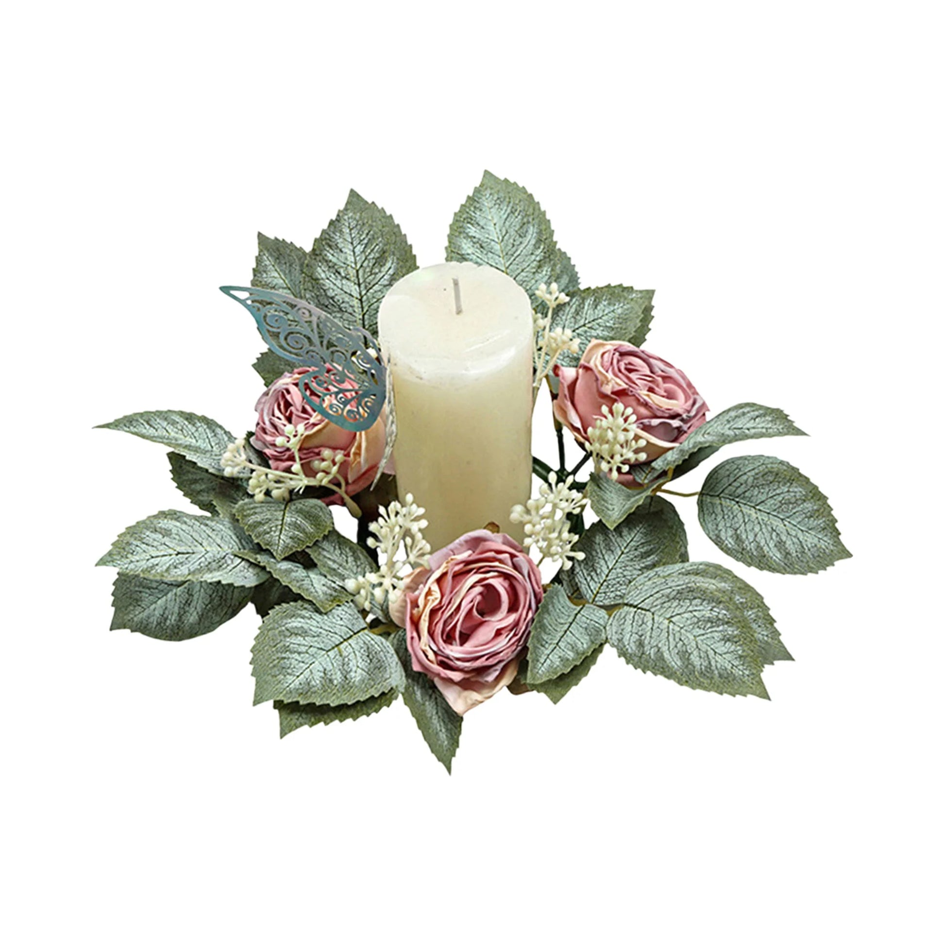 Artificial Candle Rings with Unique Fake Rose and Leaves. Candle Wreaths Table Centerpiece for Home or Party.