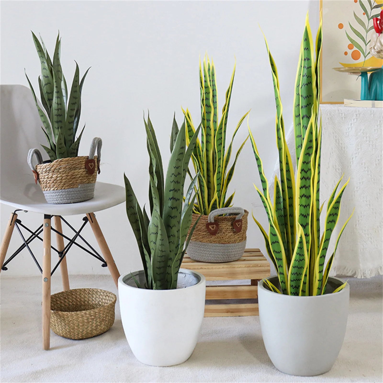 Realistic Craftsmanship: This artificialsnake plant is made from premium materials, featuring intricately carved leaves with true-to-life colors and detailed textures that beautifully replicate the natural beauty of real snake plants.