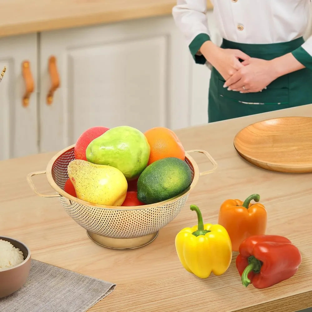 - 【DURABLE STAINLESS STEEL】Our kitchen colander is made of 304 Stainless Steel that is Lead and Cadmium free. It is rust free and will never affect the taste of your food! Healthy and safe for your daily use, rust resistant and dishwasher safe, durable and reusable for a long-service life.