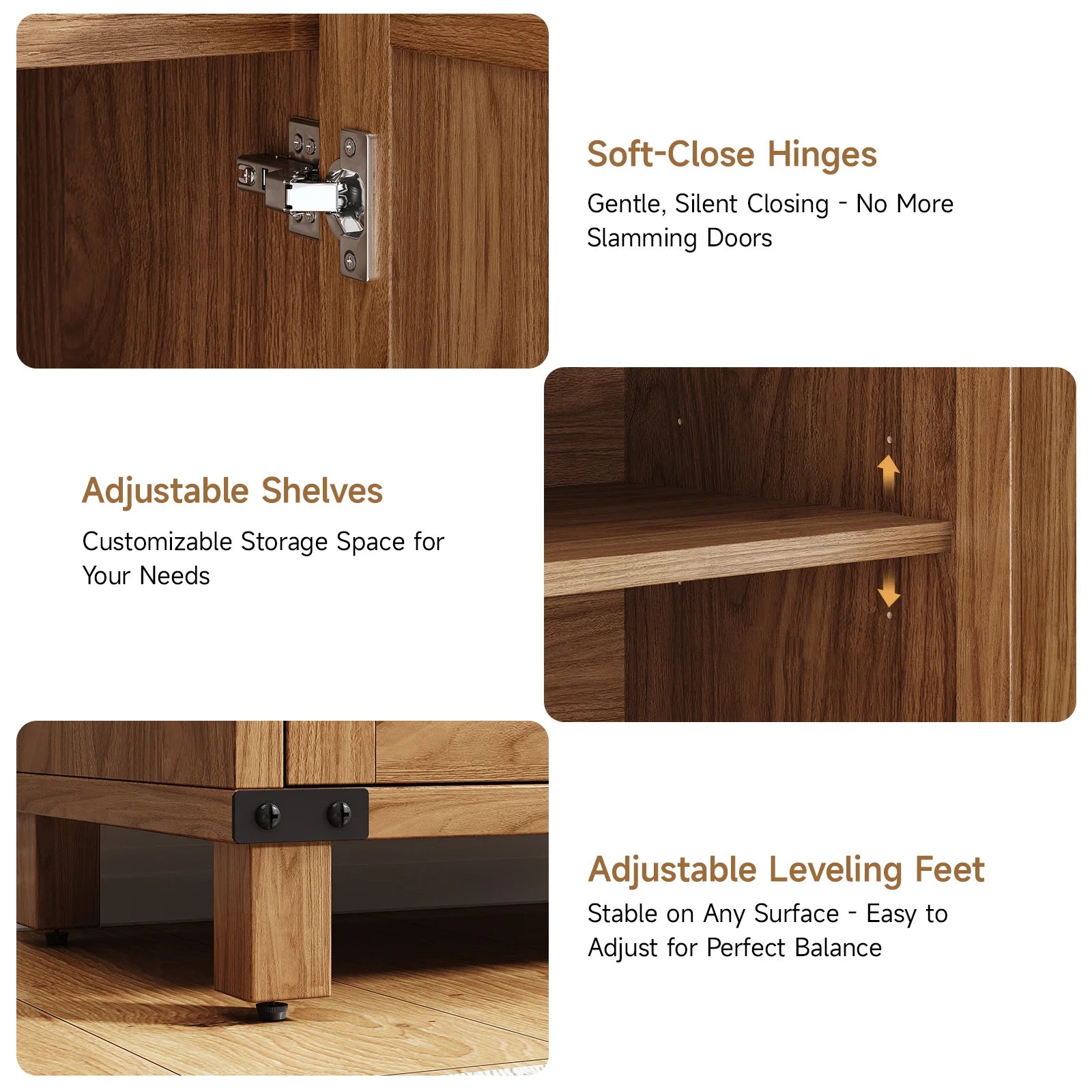 Multi-Scene Compatibility: The 31.5-inch designed sideboard cabinet is suitable for various scenes such as dining room, living room, kitchen, corridor, etc. The elegant rattan style design can adapt to various styles of houses.