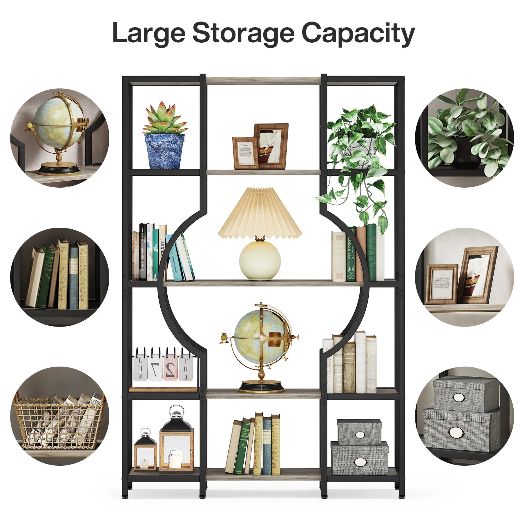 【Large Storage & Display Space】: 5-Tier tall bookshelf/bookcase will bring you large storage space without taking too much place to put it. It will be full use of your vertical space and corner place to display your photos, plant pots, books, and collections.