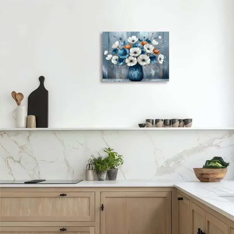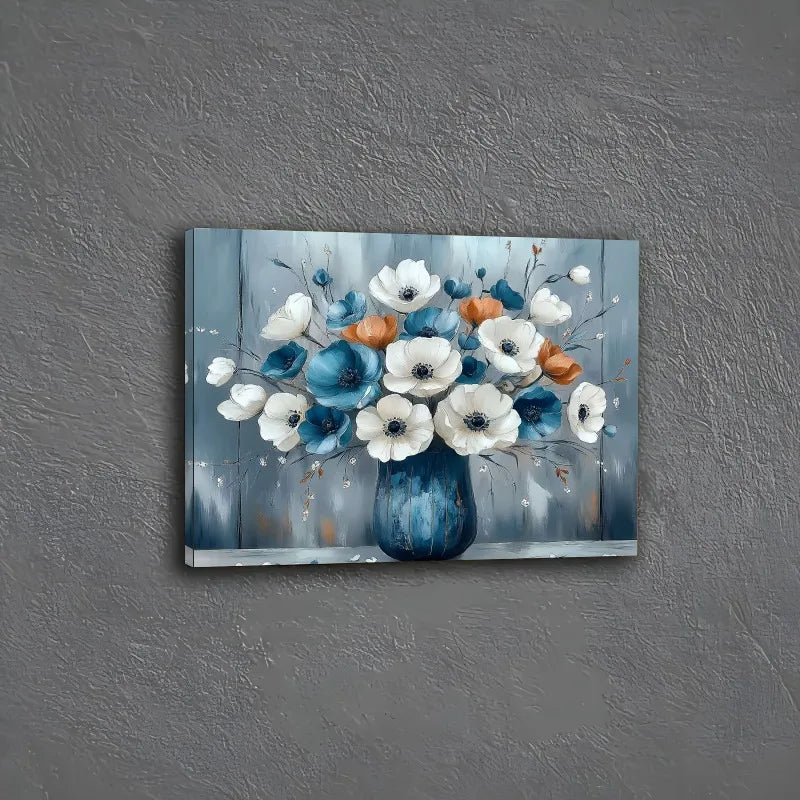 1pc Wooden Framed Canvas Painting, Three colors of flowers in a vase, Wall Art Prints for Living Room & Bedroom & Kitchen,